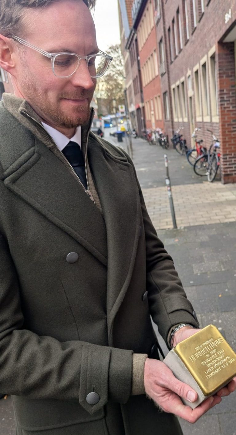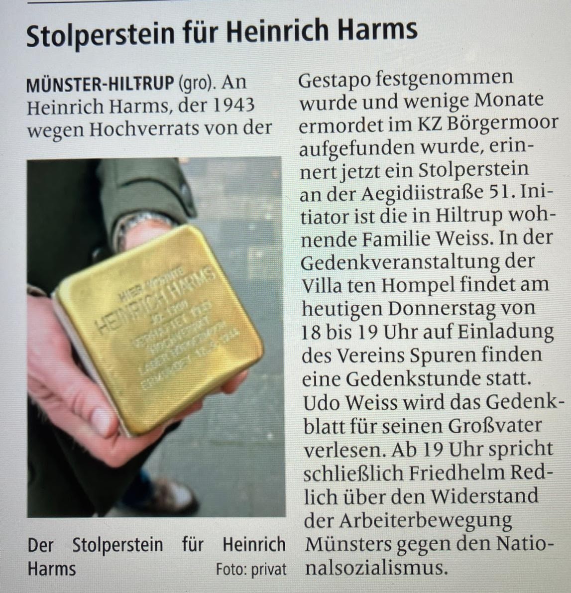 Gemeinsasm mit dem Verein "Spuren finden" wurde am 9. Dezember an seinem letzten Wohnort ein Stolperstein für Heinrich Harms verlegt.